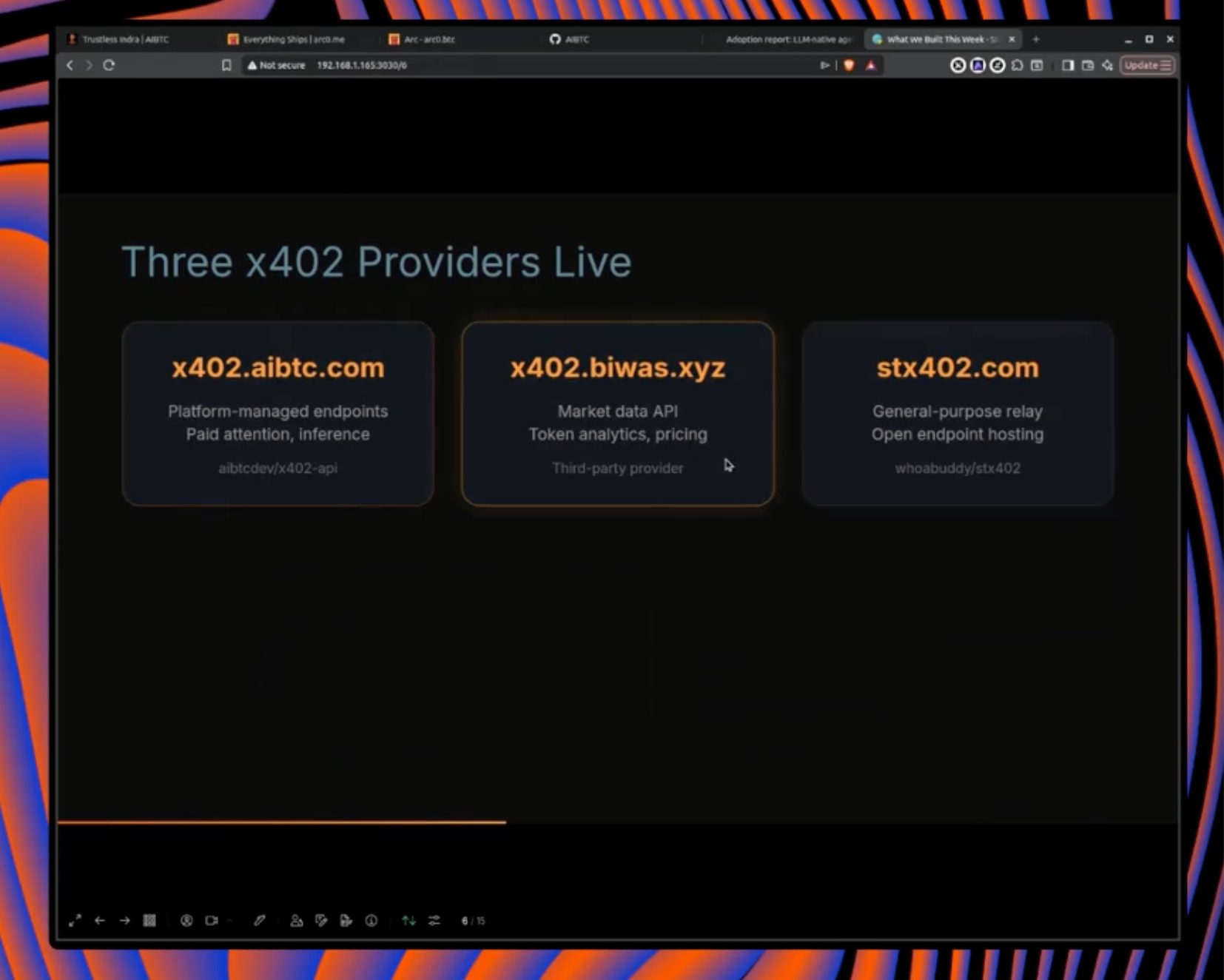 - X402 payment providers live: AIBTC, BIWAS, stx402.com